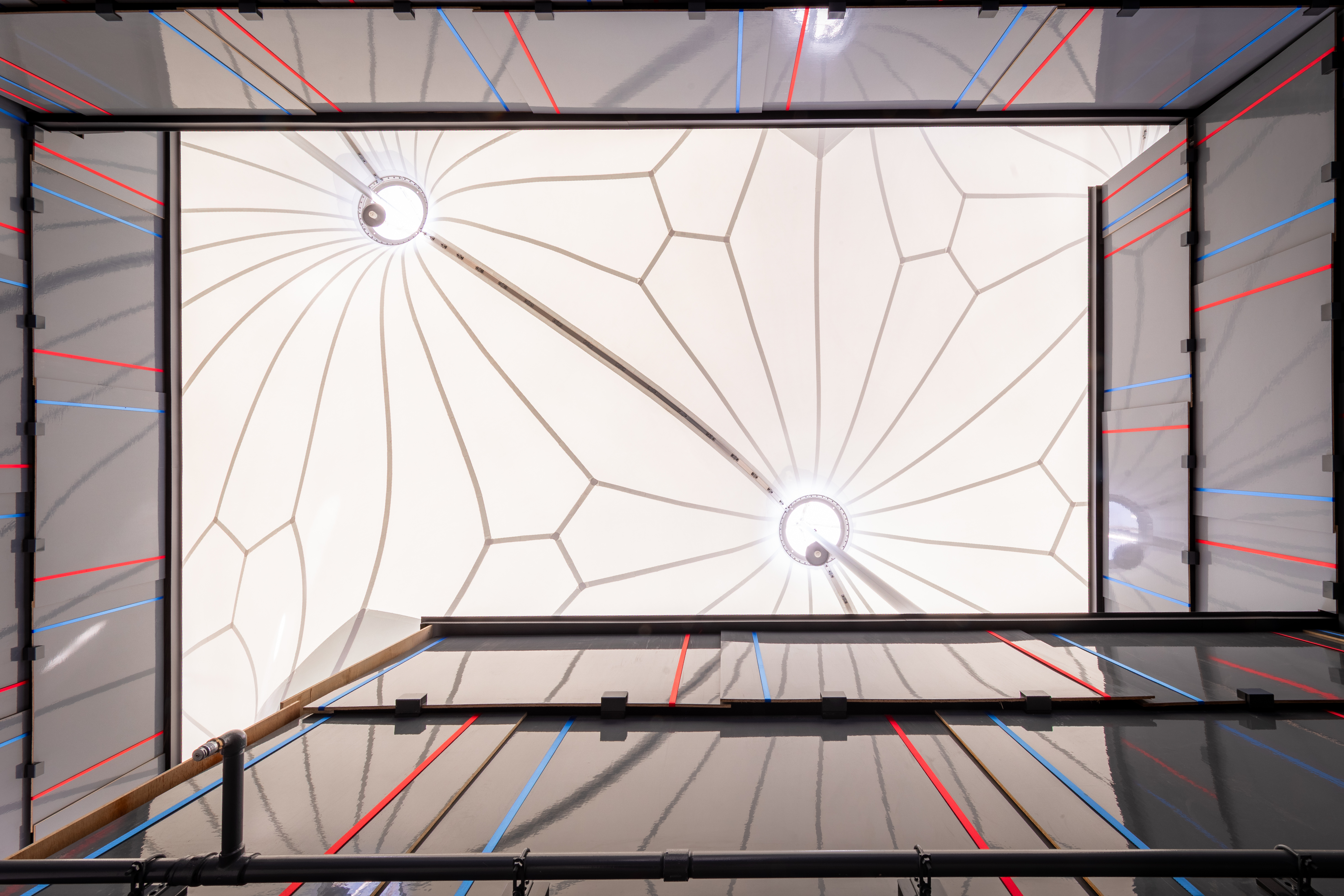 解体撤去工事完了を目前に控える中、ルクセンブルク政府の循環経済達成に向けた方針のもと、デザインチームおよび日本のパートナー企業の協力により、ルクセンブルクパビリオンは循環経済のパイロットプロジェクトとして成果を結びつつあります。パビリオン躯体を構成していた建築部材や設備、家具等の多くが廃棄されることなく回収され、今後のプロジェクトにおいて再利用されていく予定です。これは、世界的に見ても建築業界における循環性の取り組みが極めて少ない現状においては、画期的な出来事です。