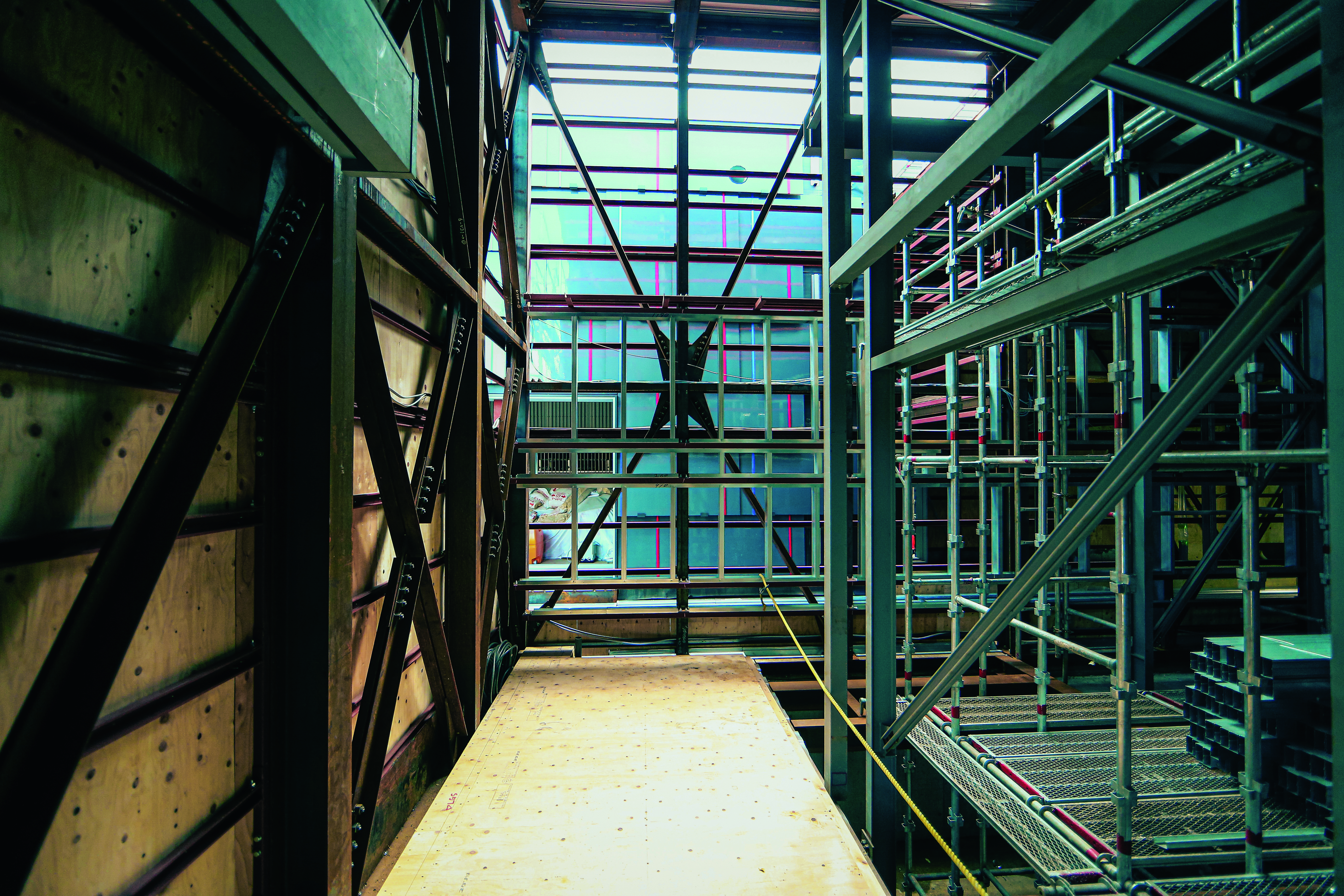 一方でこうした条件は設計する上での制約にもなります。例えば、一般的な鉄骨部材の長さは最大でも10~12メートル程であり、この制約が空間の規模や構成に影響を与えます。結果として、ルクセンブルクパビリオンは一つの大きな建物ではなく、いくつもの小さな空間が連なる構成となりました。