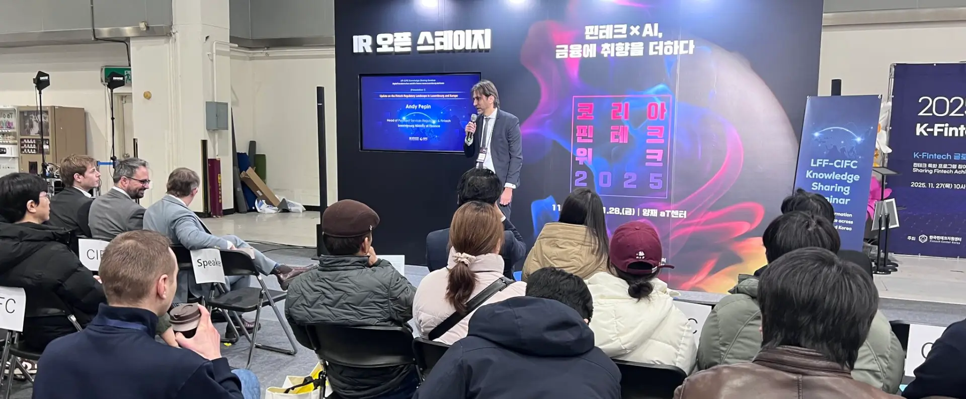 On November 28, Luxembourg for Finance co-hosted knowledge sharing seminar with Council on International Financial Cooperation (CIFC) of Korea, under the theme "Digital Transformation and AI in Finance across Luxembourg and Korea." At the seminar, Mr. Andy Pepin from the Luxembourg Ministry of Finance addressed update on the Fintech Regulatory Landscape in Luxembourg and Europe and Mr. Chris Hollifield from the Luxembourg for Finance present about AI and Blockchain Trends in Luxembourg’s Finance and Fintech Sector.